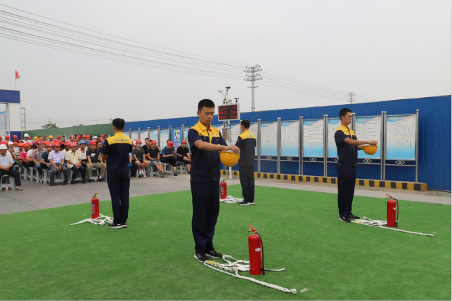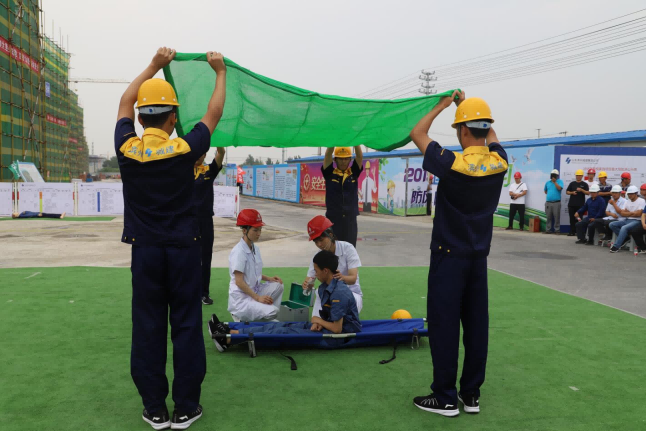應急救援演練現場首先進行了安全帽、安全帶佩戴及滅火器使用展示、中暑應急救援演練、骨折應急救援演練、朗誦《我相信,你相信嗎》、觸電應急救援演練等一系列安全應急救援演練項目。演練貼近實戰,過程緊湊,組織開展有序。此次演練對提升現場安全事故應急水平,提高工人安全素質,應對突發事件的組織協調能力必將起到積極的作用。