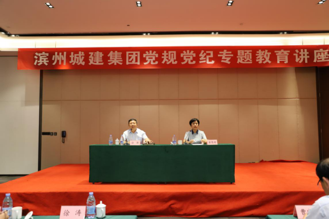 8月15日下午,濱州城建集團邀請了市紀委市監委派駐紀檢監察室崔慧娟同志做黨規黨紀知識專題講座,集團公司全體在職黨員、領導班子成員、機關全體管理人員、集團下屬公司領導班子及項目經理共計120余人聆聽了講座,市國資委黨委委員、調研員徐濤主持會議。