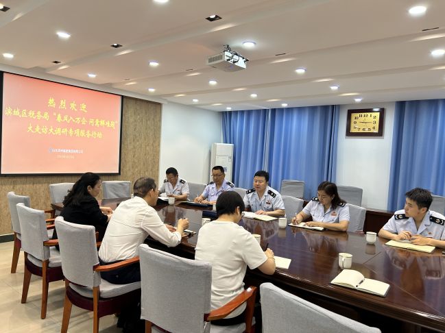 為深入貫徹落實習總書記重要精神,助力國有企業更好發展,5月29日上午,濱城區稅務局副局長呂宗杰率領業務科室及北鎮分局負責人一行來我公司開展“大走訪、大調研”專項服務行動,為公司提供“面對面”政策宣講、咨詢、答疑服務,助力公司進一步了解稅務政策及相關紅利。黨委副書記、總經理孟慶國,總會計師王彬彬及相關財務人員參加。